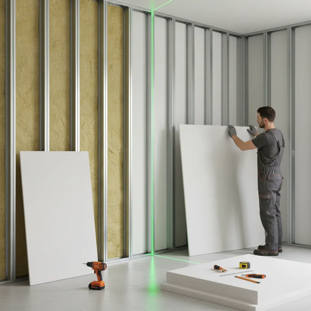 Unser Innenausbau umfasst Trockenbau, Decken, Wandgestaltung, Türmontage und funktionale Raumlösungen.