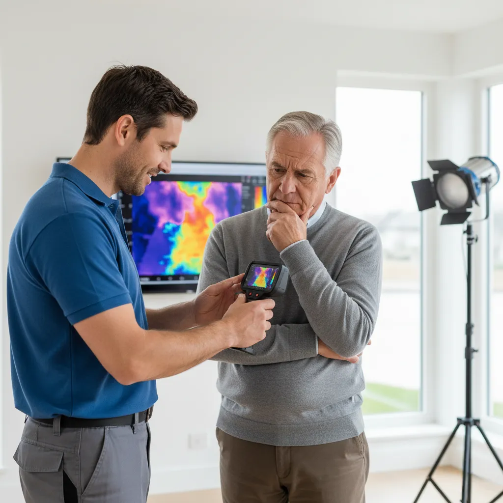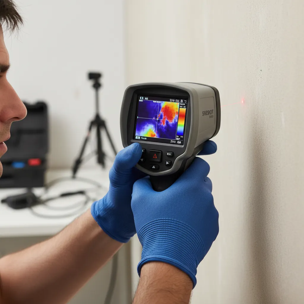 Unsere Messtechnik kombiniert Thermografie, Akustikmessung, Tracergase und Feuchtedetektion.