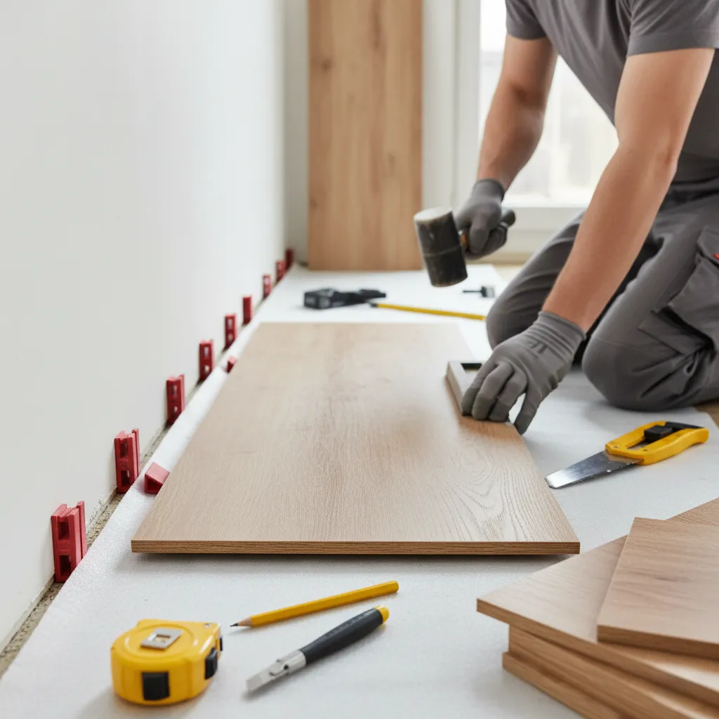 Dazu gehören Untergrundvorbereitung, Trittschalldämmung, exakter Zuschnitt, Sockelleistenmontage und Feinbearbeitung.