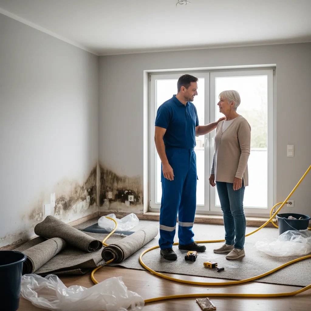 Dazu gehören Absicherung, Wasserabsaugung, Trocknung, Schimmelprävention, Dokumentation, Reparaturen und finaler Wiederaufbau.